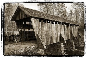 Located near Asheboro in Randolph County, Pisgah Covered Bridge is one of two covered bridges left in North Carolina, and the only one that is accessible to the public. It was almost destroyed by a flood a few years ago, but under went restoration and is now being preserved. For info, go to http://www.heartofnorthcarolina.com/things-to-do/index.pl?id=11