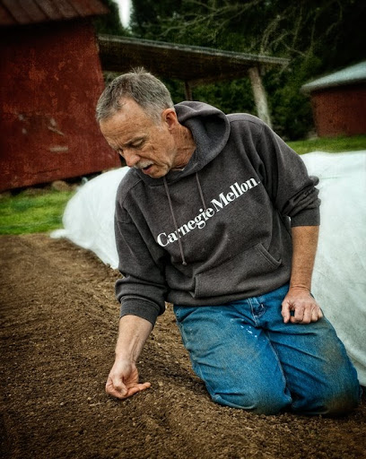 I stopped by my neighbors, Goat Lady Dairy, south of Greensboro yesterday to chat and pick up some goat cheese, and photographed Steve and Lee Tate as they were planting early vegetables before the rain set in. The Tates use their garden to produce fresh organic vegetables for the farm brunches and dinners they put on at their dairy. In addition to the cheese I picked up, Steve let me try some of their fresh goat milk yogurt and it is definitely a winner. Steve an Lee are both wonderful people and are advocates of locally grown food, and they possess a world of knowledge on sustainable agriculture. They are leaders in the local slow food movement. You can find out more by visiting http://www.goatladydairy.com/