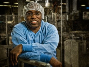 Industrial portrait of a North Carolina pharmaceutical worker. From a project promoting business and workers in high tech industries in the state.