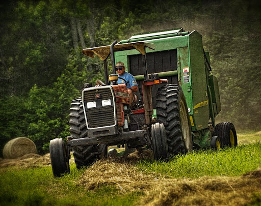 Farming is many times a exercise in compromise. Abundant rain means a lot of grass and a lot of hay. Overabundant rain means a lot of grass and the lack of good weather to harvest hay. Our area has fallen into the later category this year. We have a tremendous amount of hay, but we haven’t had a lot of good weather up until now to make it, and nothing upsets a farmer more than wet hay. Greg Williams of Williams Dairy, south of Greensboro works late in the afternoon to catch up on his baling.