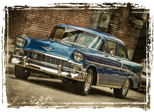There is a body shop across from my studio in Greensboro, North Carolina, and they must do pretty good work. You never know what they will be working on, but from time to time there are some nice cars sitting out front. This slick 56 Chevrolet was there for some touchup last week. Looked fairly stock on the outside, but when I saw the hood open, it definitely wasn’t original show-room.