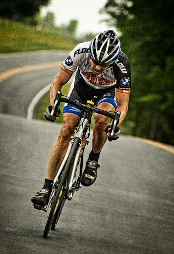 The lead cyclist breaks away from the pack during the 2009 Tour de Lions in Grays Chapel, North Carolina earlier this summer. It’s not really a race, but the riders do take things pretty seriously. His late kick enabled him to finish about five minutes ahead of the rest of the field after a 75 mile ride. Not the Tour de France, but a lot of fun nonetheless.
