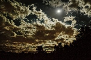 A few weeks ago we had one of those surreal night skies you sometimes see in the fall. The Moon was full with Venus nearby. A layer of broken clouds streamed by giving an almost pseudo daylight effect.