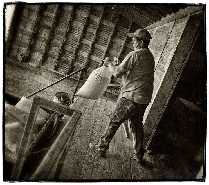 Neighbor Bobby Bradds loads hog feed at the local mill in Julian, North Carolina. It’s an old style feed mill where farmers can still bring their own grain and have it custom ground. Bobby raises “farm raised” pork for the local Greensboro market. His hogs are allowed to roam in a pasture and not shut up in commercial pens, part of the rising “slow food” movement in our area.