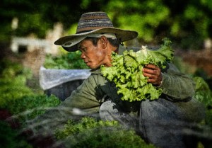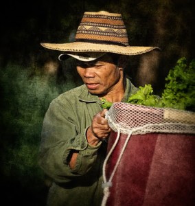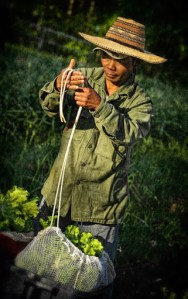Goat Lady Dairy in Grays Chapel, North Carolina started a CSA (Community Supported Agriculture) garden this year and yesterday was the first weekly harvest and delivery to members. One of the key personnel involved was gardener Chram (pronounced “Trom”). Chram is a Montagnard originally from Viet Nam who has been training to help run the day to day gardening operations along side farm manager Daniel Woodham.