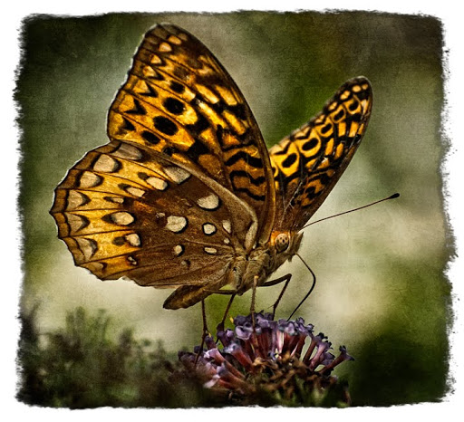 Our backyard has been alive this summer with life such as this rare fritillary butterfly. With so much abundance, however, nature evens things out as the mantis lurks in the shadows waiting for an opportunity,