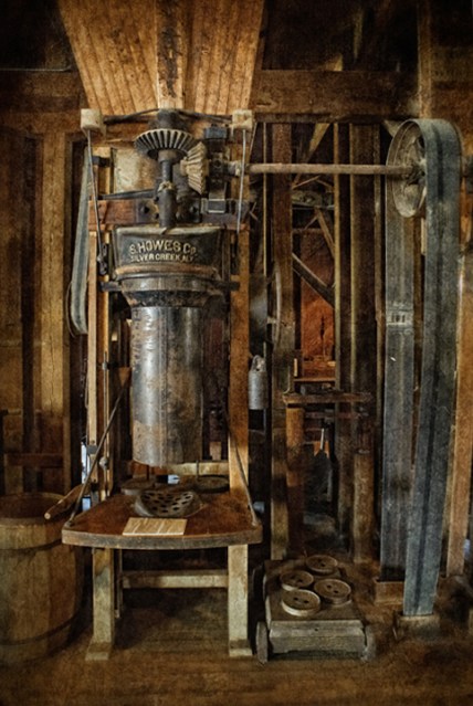 Yate’s Mill in Raleigh is a fine example of a 18th century water powered grist mill, and Murray’s Mill in Catawba County, North Carolina is an equally well preserved late 19th and early 20th century example.  Built in 1913 by John Murray, whose father, William, had operated a mill on the site since 1883, Murray’s Mill is a combination of water powered stones for grinding corn and roller mills for grinding flour. The equipment is almost completely intact from the day it ceased operation in 1967. Next door to the mill and part of the Murray’s Mill Historic District, is the Murray and Minges General Store run by John’s brother Oley. For more info on these historic structures, go to http://www.catawbahistory.org/historic_murrays_mill.php.