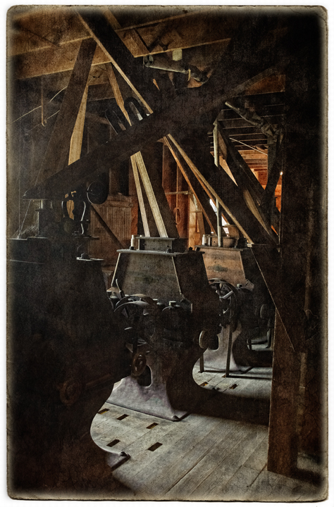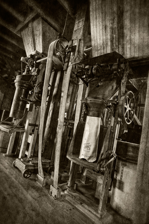 Yate’s Mill in Raleigh is a fine example of a 18th century water powered grist mill, and Murray’s Mill in Catawba County, North Carolina is an equally well preserved late 19th and early 20th century example.  Built in 1913 by John Murray, whose father, William, had operated a mill on the site since 1883, Murray’s Mill is a combination of water powered stones for grinding corn and roller mills for grinding flour. The equipment is almost completely intact from the day it ceased operation in 1967. Next door to the mill and part of the Murray’s Mill Historic District, is the Murray and Minges General Store run by John’s brother Oley. For more info on these historic structures, go to http://www.catawbahistory.org/historic_murrays_mill.php.