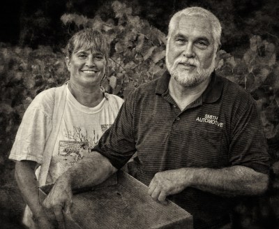 Darrel and Tammy Smith are raising several varieties of muscadine grapes on their farm in Grays Chapel, North Carolina. They pick them for both table use and wine. Muscadines are the only grapes native to the Southeastern United States, and include the brown variety folks often call scuppernongs. Their vineyard is located on the slopes of Caudle’s Mountain, one of the most scenic spots in Randolph County.