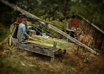 Sorghum pressing time at my neighbor Gary McMasters. A few images as Gary’s crew runs cane through the mill to make juice to be cooked into molasses.