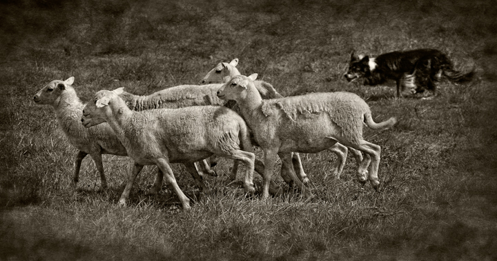Sheep dogs demonstrate their natural herding instincts at the Open Farm Day at Rising Meadow Farms in Grays Chapel, North Carolina.