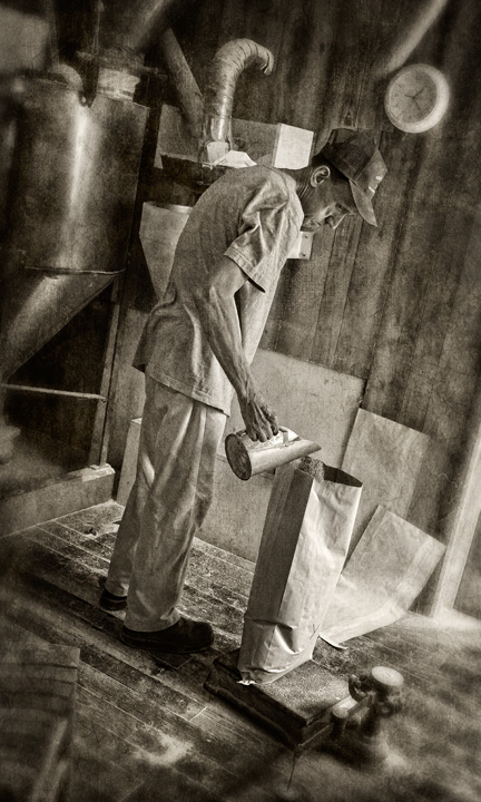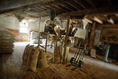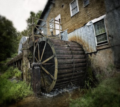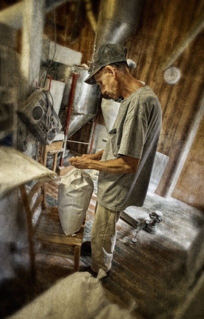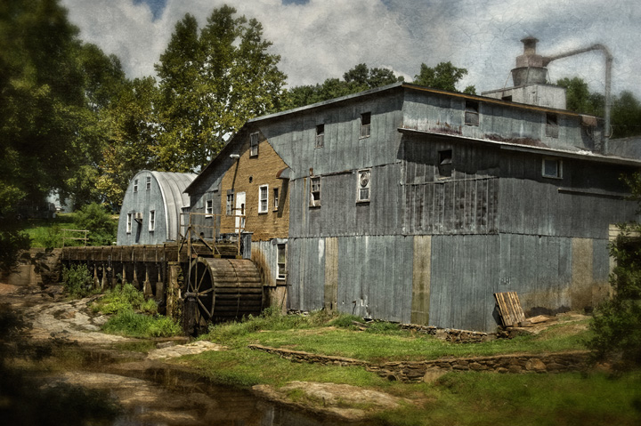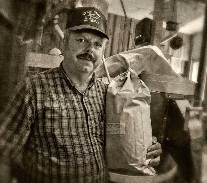Linney’s Mill in Union Grove, North Carolina is a working water powered grist mill producing stone ground corn meal and grits daily. Run by Billy “Smiley” Linney, the mill was built by his grandfather W.L. Linney in 1937 on Rocky Creek, north of Statesville, and was run by his father William beginning in 1954. Mills have stood on the site since 1790.