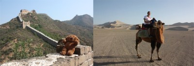 Among the family visitors we had over the holidays was Brown Teddy, my son Devin’s childhood companion. Teddy has been living in New Hampshire the last couple of years with Devin and recently had the opportunity to be the traveling companion of Dartmouth student Jocelyn Powelson on a trip to China, where the globe-hopping bear had a chance to view the Great Wall and take a ride on a camel in the Gobi Desert. After the New Year, his adventures continue. Next stop, New Zealand, and a chance to view the Southern Cross.