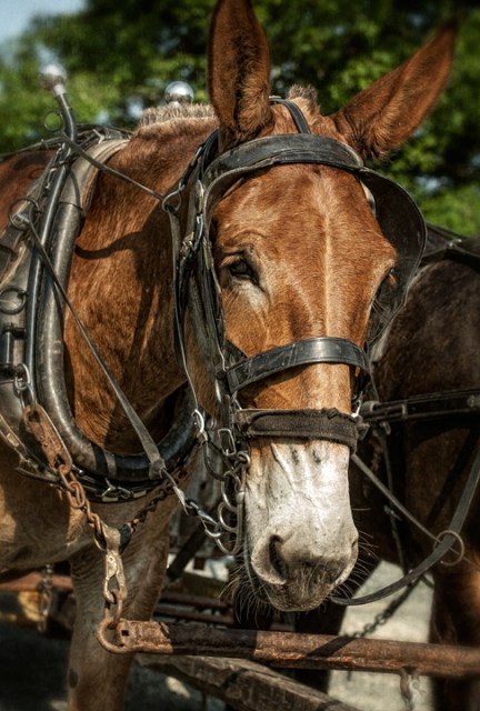 Neighbor Gary McMasters picked up Melvin Nunn, Sr. and let him drive Pearl and Remus out to Melvin’s business, Liberty Farm and Garden on a Saturday morning. Melvin said it had been 75 years since he had driven a team of mules.