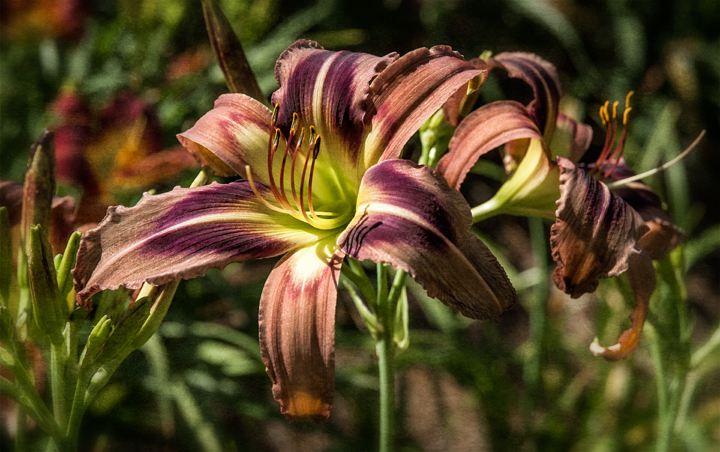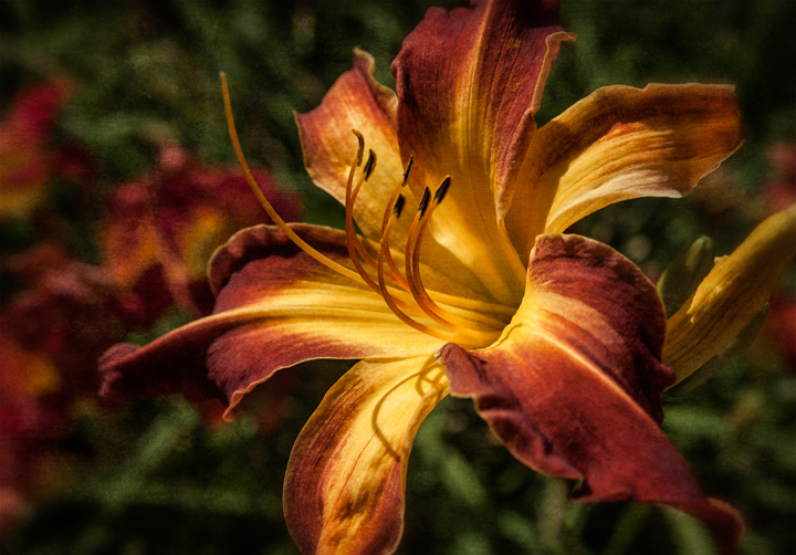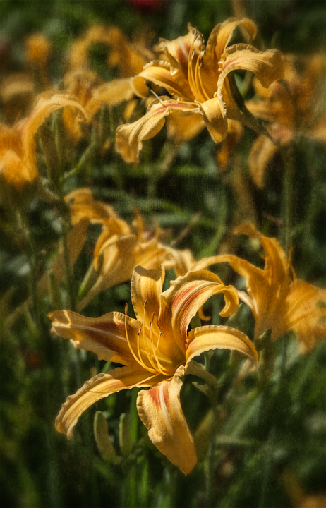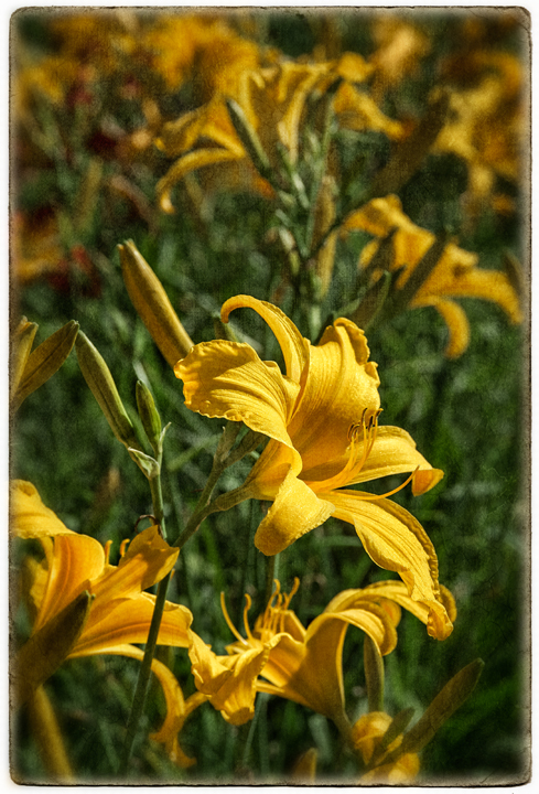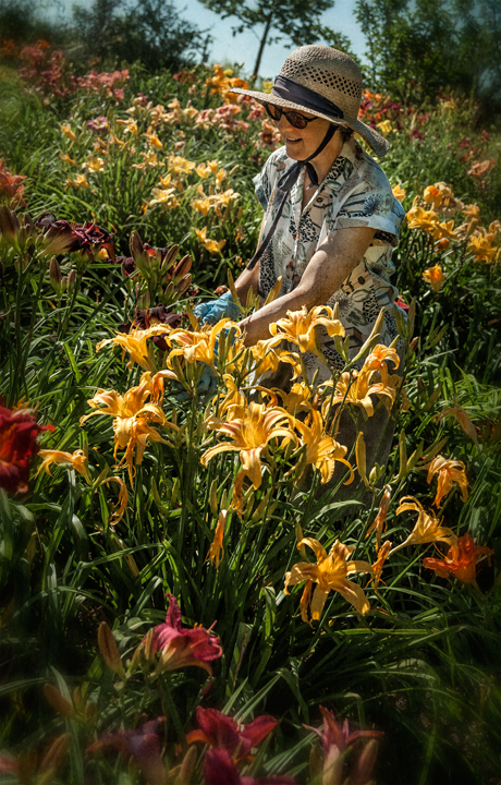 Neighbor Gay Nell has hundreds of daylilies in her yard and garden near Red Cross, North Carolina that she tends daily, and they are currently in peak full bloom. She has so many and they are so gorgeous, even her brother calls her the Lily Lady.