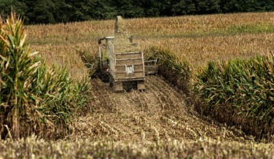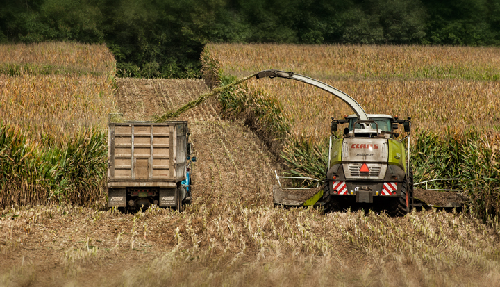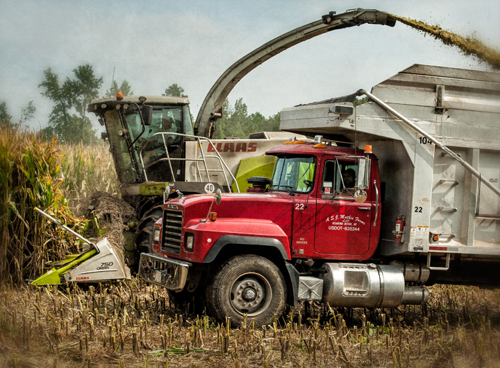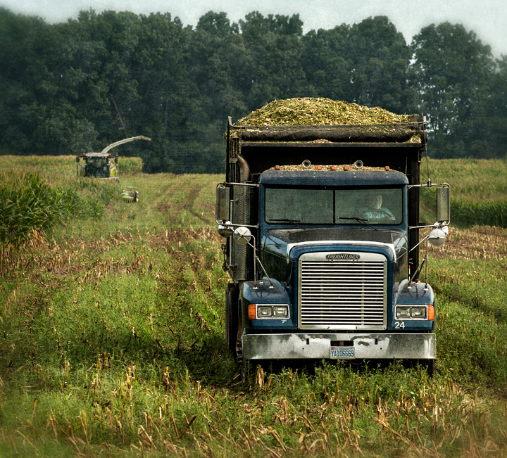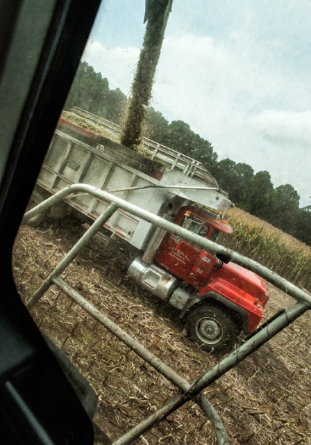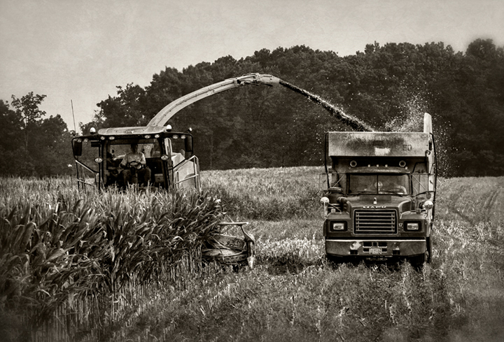 John Mathis and his crew cut corn silage near Randleman, North Carolina. The corn will be used for cattle feed at a local dairy farm.