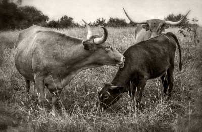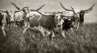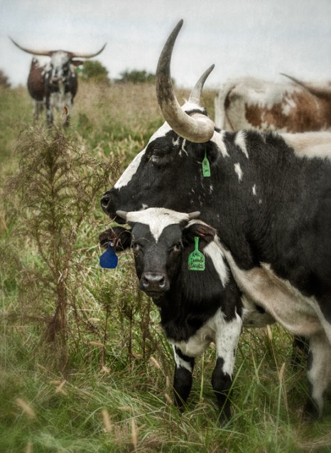 Longhorn cattle at Dueling Owl Farm in southeastern Randolph County, North Carolina. The folks at the farm raise heirloom turkeys as well as cattle in conjunction with Rolling M Longhorns.