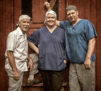 Steve Tate, Carrie and Bobbie Bradd. Cheesemakers at the Goat Lady Dairy in Grays Chapel, North Carolina. Some of their product below.