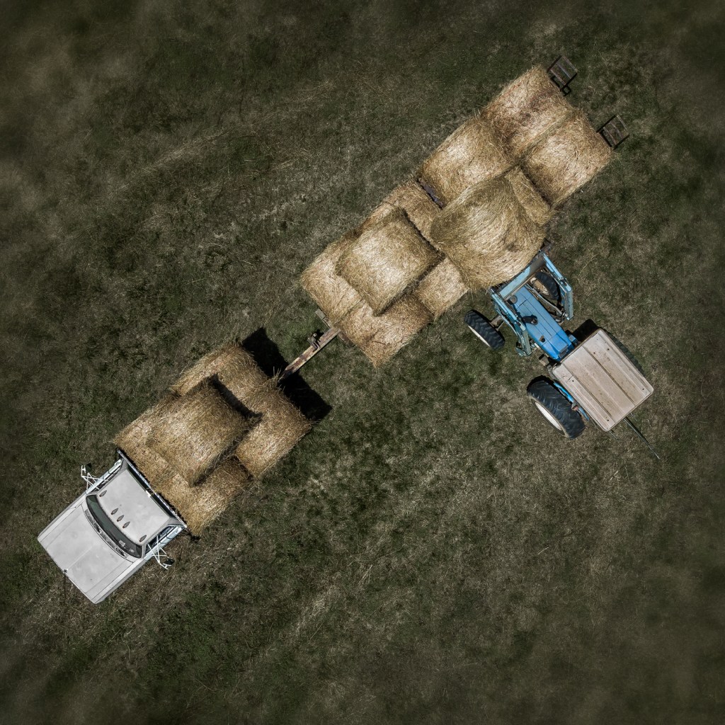 Neighbor Kent Atkinson loads hay near Liberty, North Carolina.