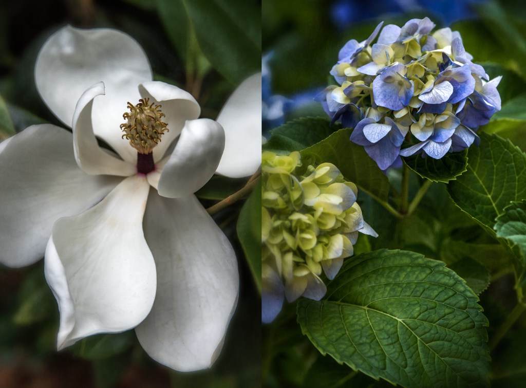 Magnolia and hydrangea. Grays Chapel, North Carolina.