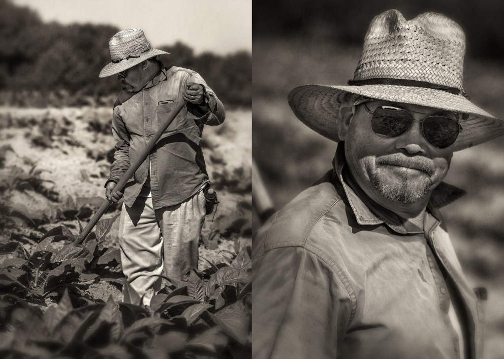 Hoeing tobacco. Whitaker Farms. Grays Chapel, North Carolina.