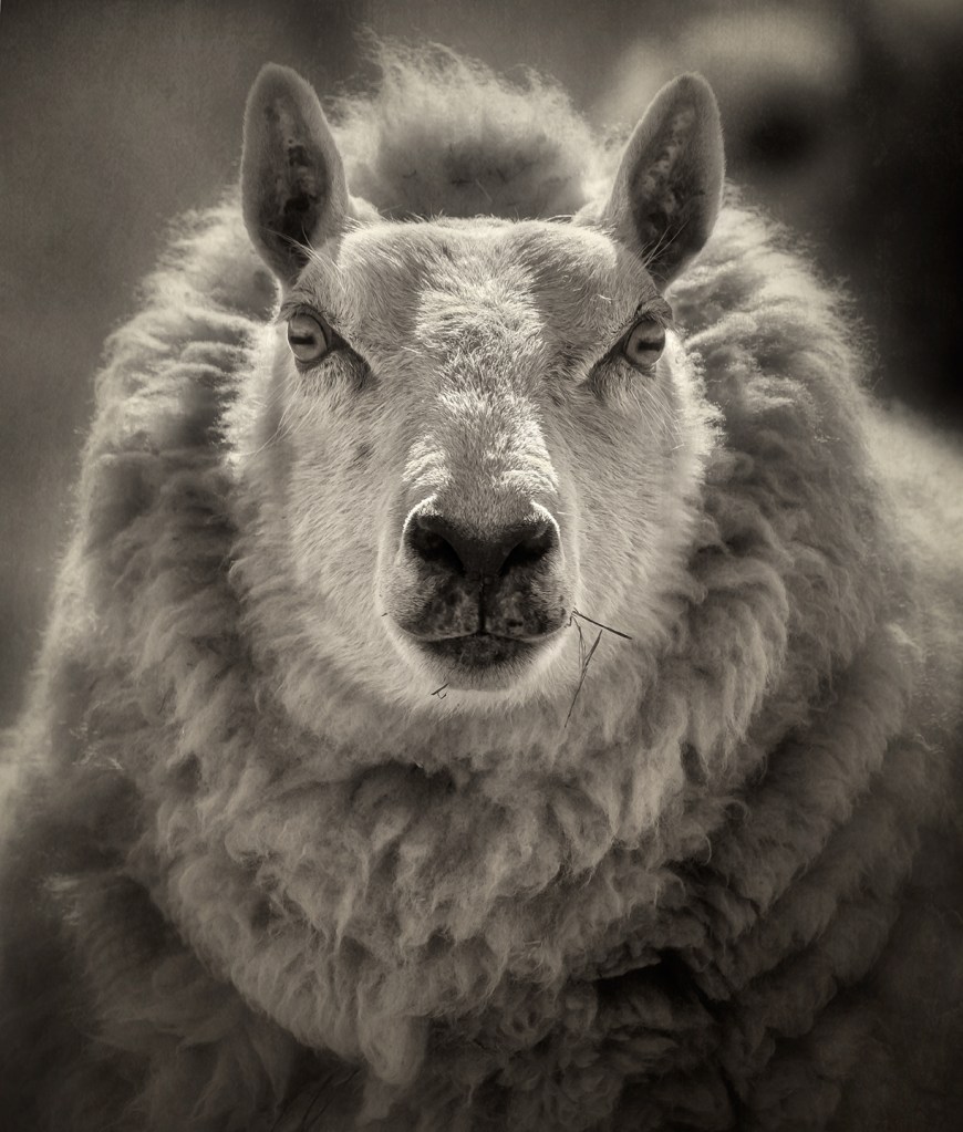 Cheviot sheep face. Grays Chapel, North Carolina.