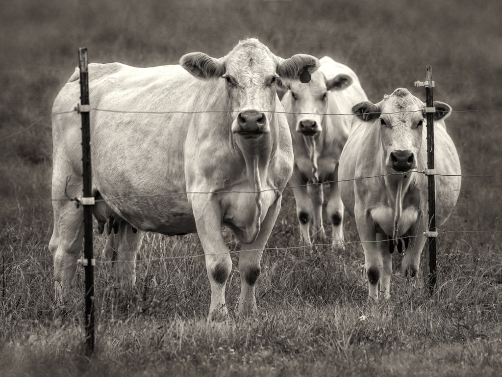 Charolais cows. Near Liberty, North Carolina.