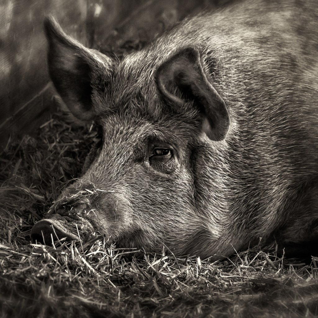 A Tamworth heritage breed sow. Providence Farm. McLeansville, North Carolina.