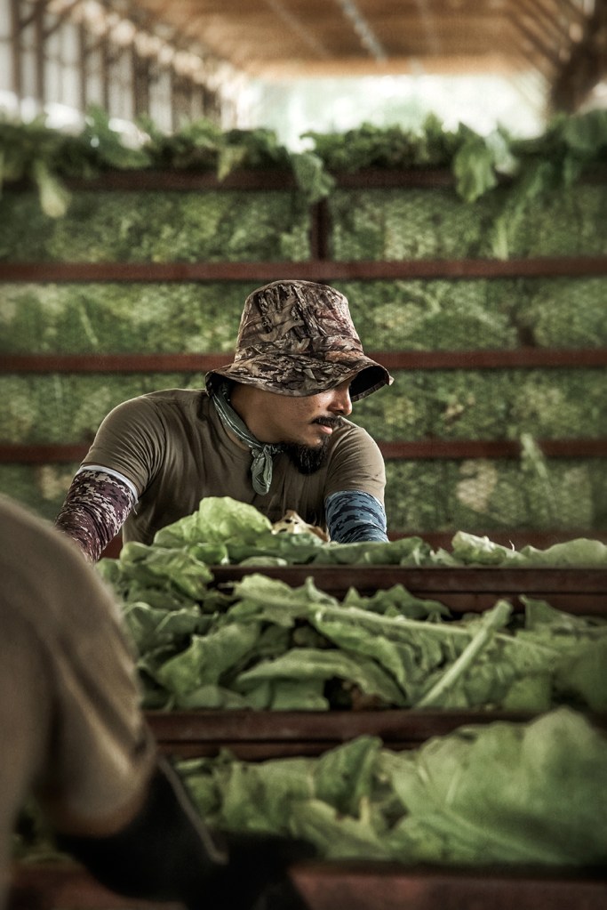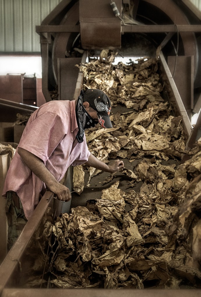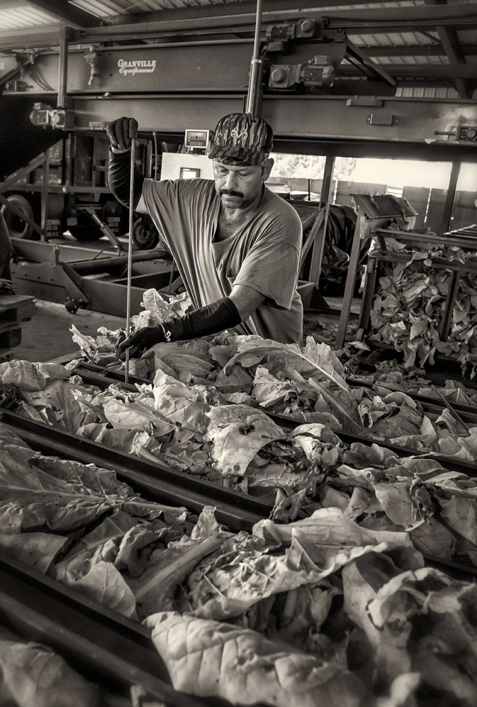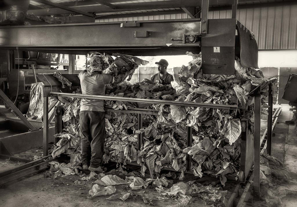 Barning green tobacco and processing cured. Grays Chapel, North Carolina.