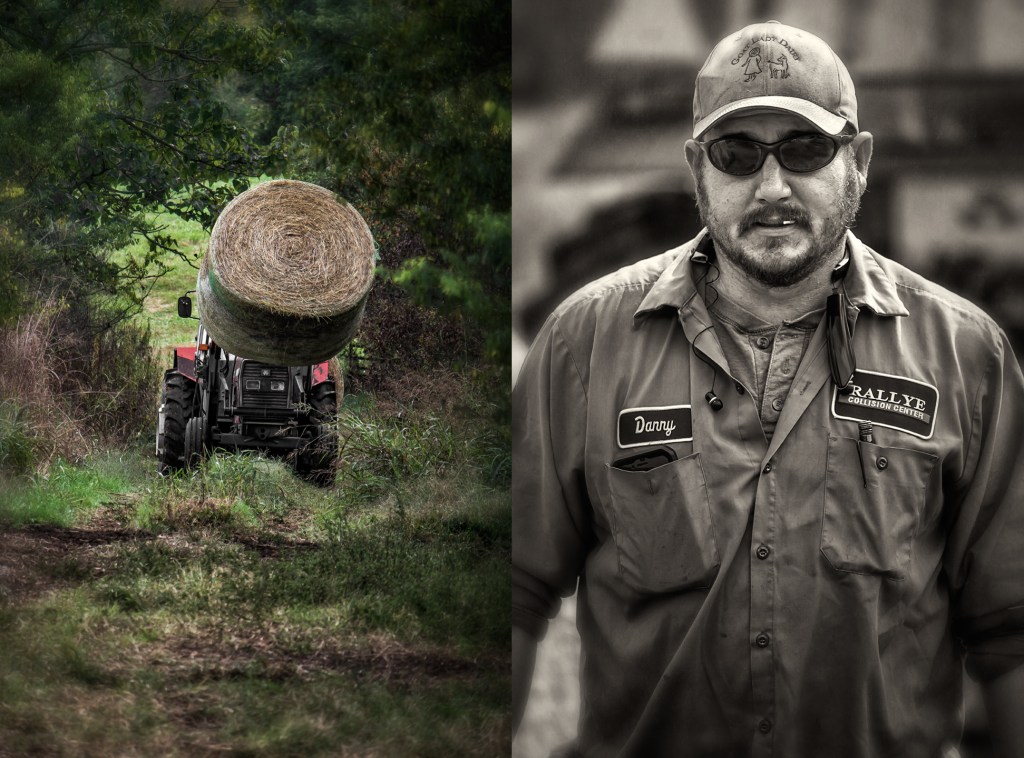 Michael Williams of Williams Dairy moves hay from his lower pasture. Grays Chapel, North Carolina.