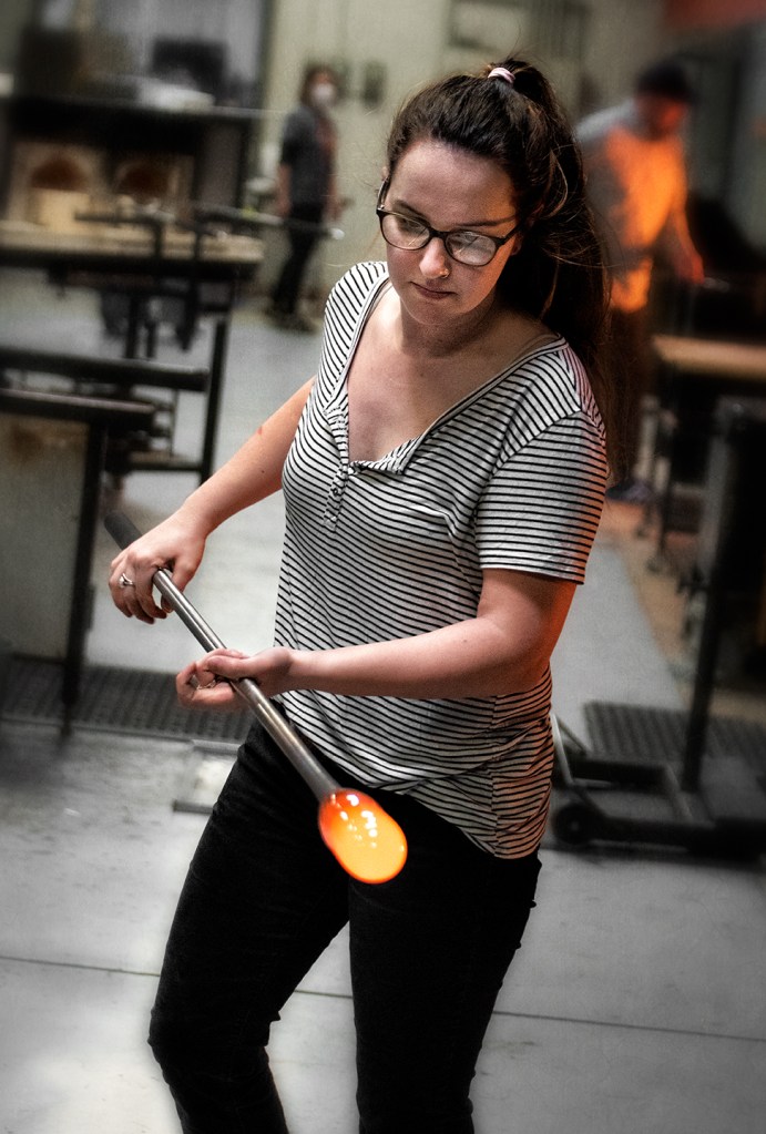 Jackie Polofka and Trevor McNutt work glass at STARworks in Star, North Carolina.