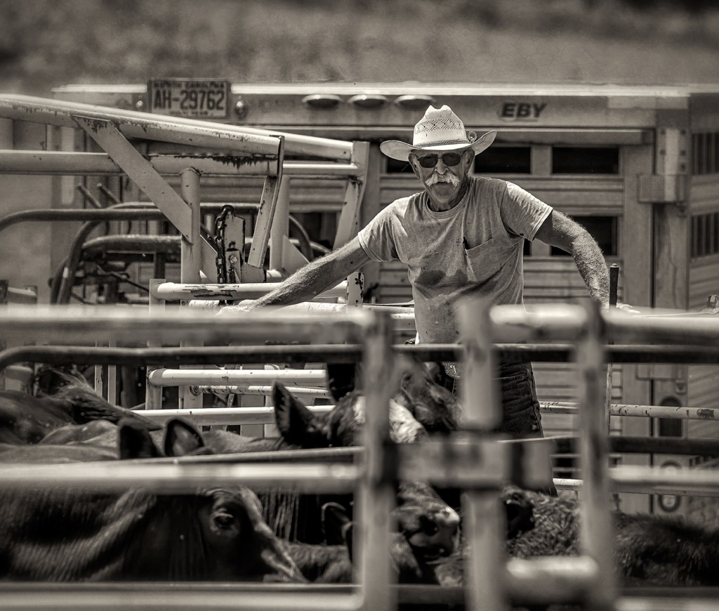 Tommy Tally working cows near Grays Chapel, North Carolina.