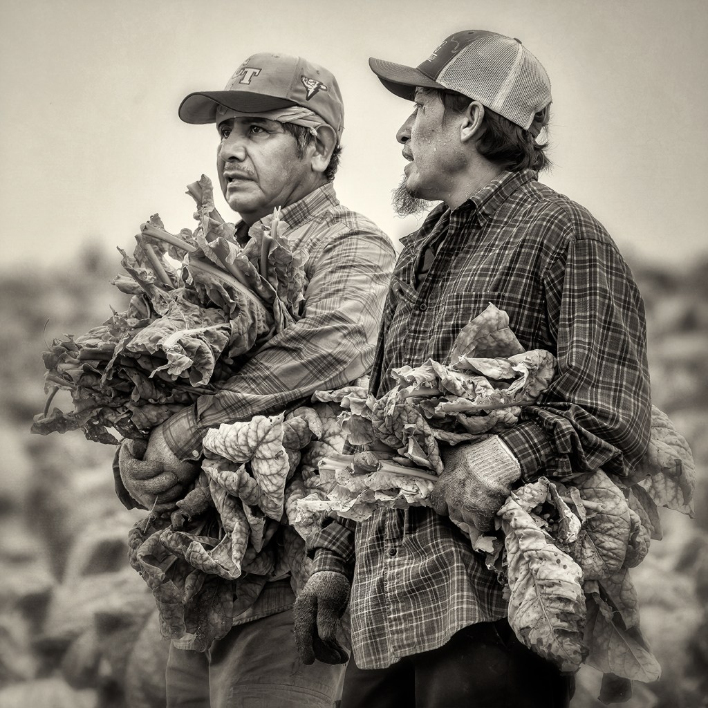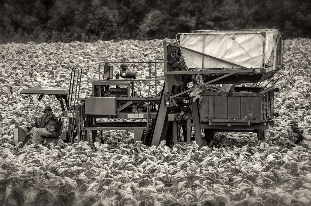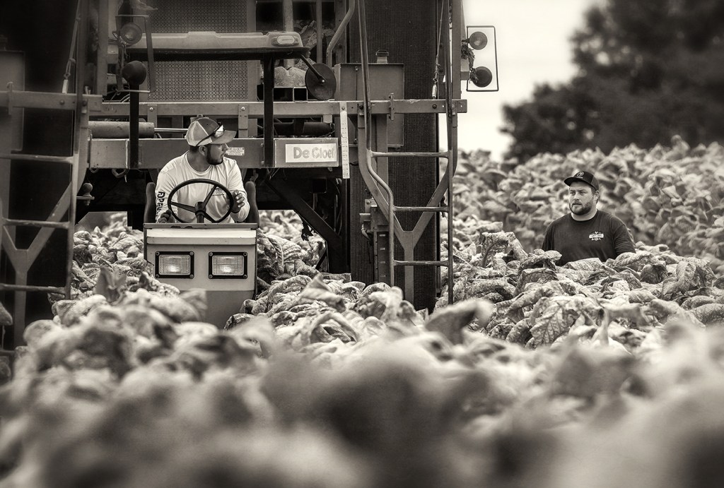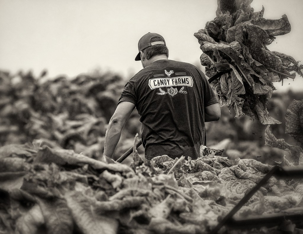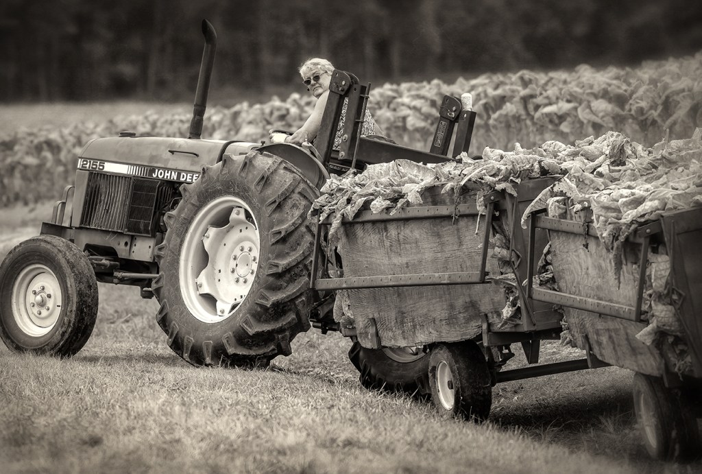 Jackie Canoy, her son Kevin and their crew harvest tobacco on the Canoy family farm near Ramseur, North Carolina.