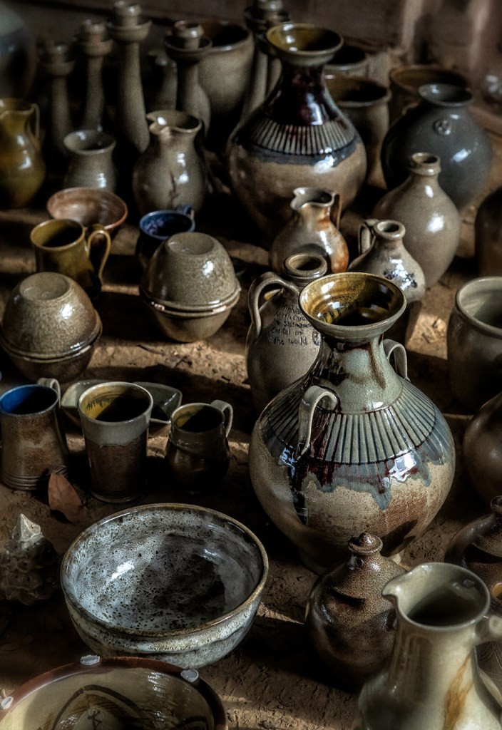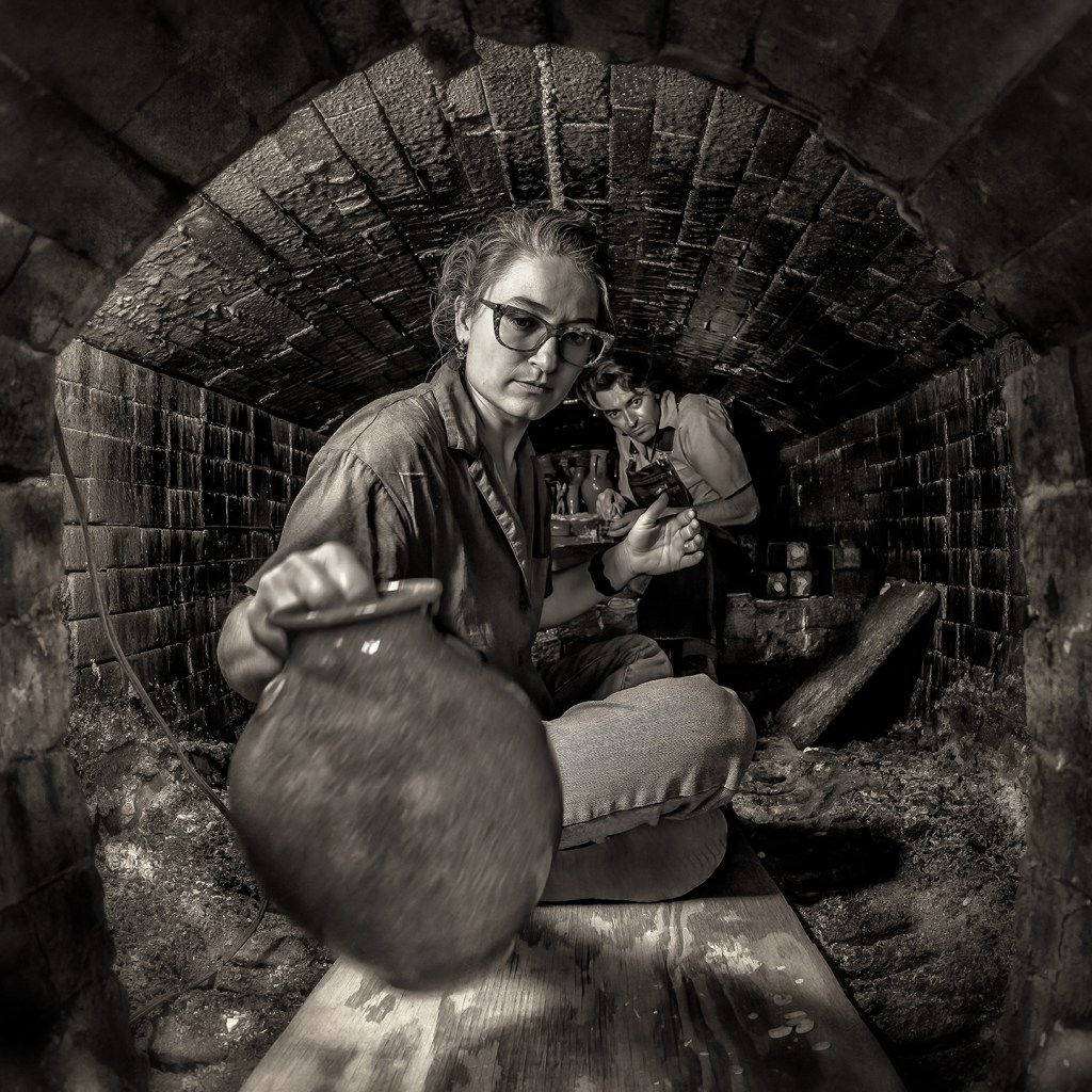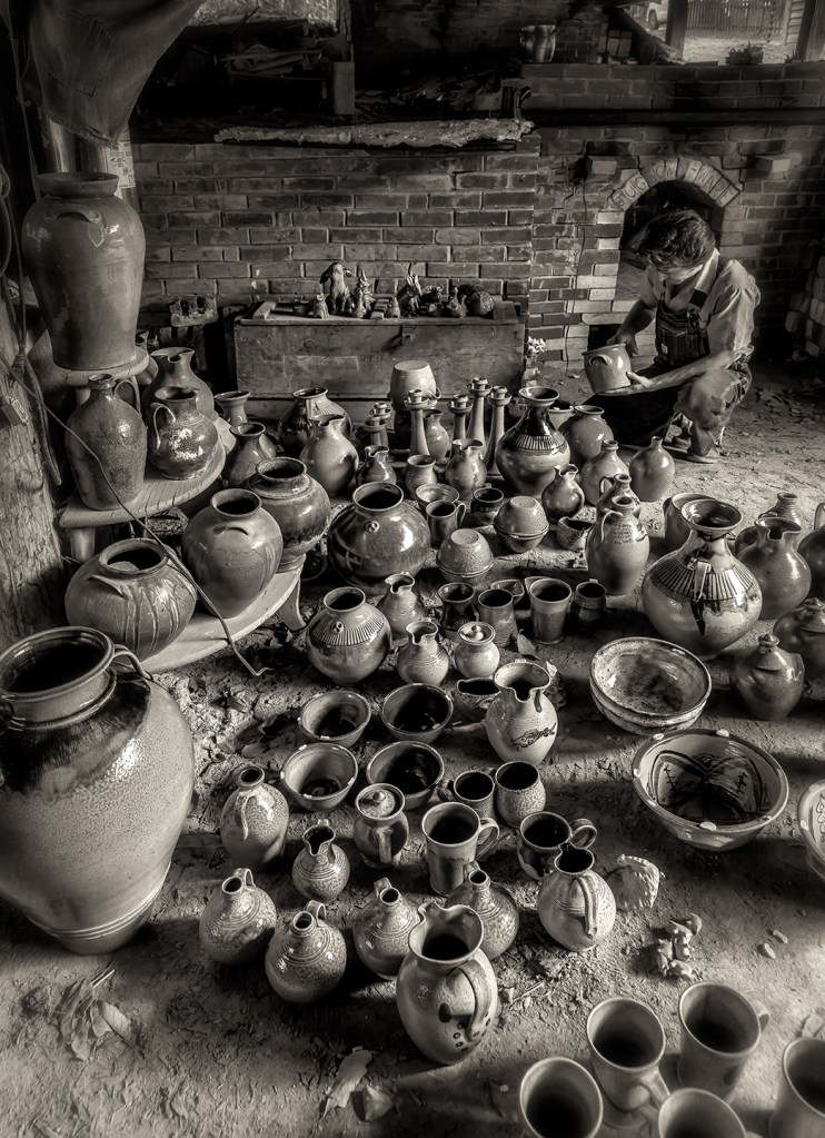 Unloading the groundhog kiln at Jugtown Pottery in northern Moore County near Seagrove, North Carolina.