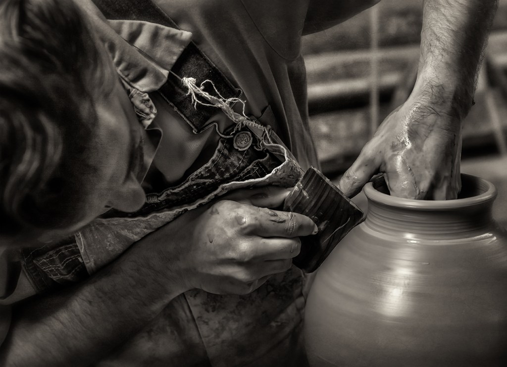 Jacques and Juliana Busbee created Jugtown in 1917. The tradition they began has been continued and developed by the Owens family, Vernon and Pam, their son Travis and daughter Bayle. I visited on a morning as they were turning new pieces at their pottery in Northern Moore County near Seagrove, North Carolina.
