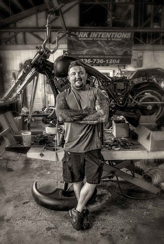 Custom Bike Builder Motorcycle, North Carolina, People, Portraits, Randolph County Liberty, North Carolina. (Photograph copyright 2024 by Dan Routh) Share this: Click to share on X (Opens in new window) X Click to share on Facebook (Opens in new window) Facebook Like Loading...