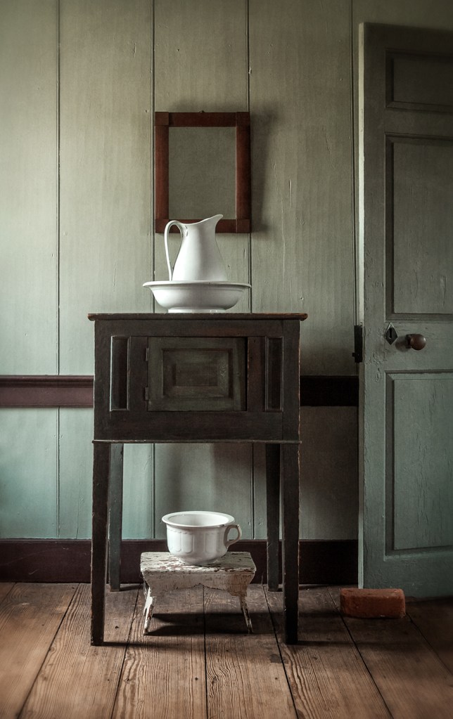 Washstand in the historic House in the Horseshoe State Historic Site. Near Sanford, North Carolina.