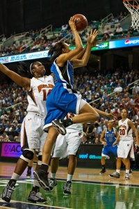 This weekend I did something I don’t get a chance to do often, but it was something I really enjoy. I photographed basketball at the Women’s ACC Tournament in Greensboro. The championship game Sunday was a thriller. Maryland and Duke fought it out for the entire game with Maryland leading going into the last few seconds. Duke then managed to force an overtime in which Maryland finally prevailed 92 to 89. The game featured some of the top women players in the country in Marissa Coleman and Kristi Toliver from Maryland and Abby Waner from Duke, and all the players from both teams were on their best games. If you haven’t seen women’s NCCA basketball, you should. Great teams and great play.