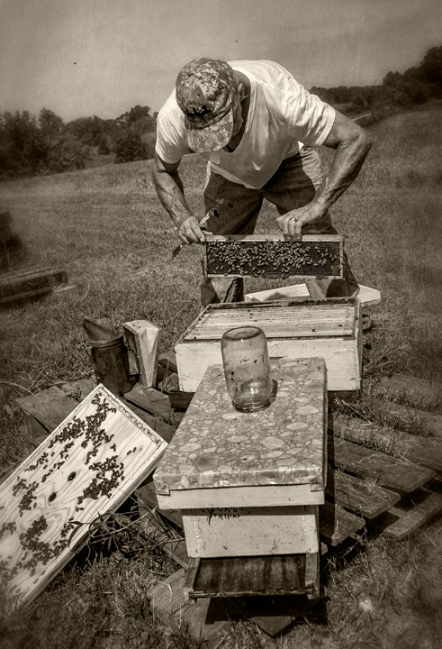 A Saturday morning found my cousin Jerry Routh working his beehives near my home in Grays Chapel, North Carolina. Jerry keeps bees for honey and also raises queens for sale to other beekeepers. His business is called Bee Ready Bee’s and his Facebook page can be found at https://www.facebook.com/BeeReadyBees.