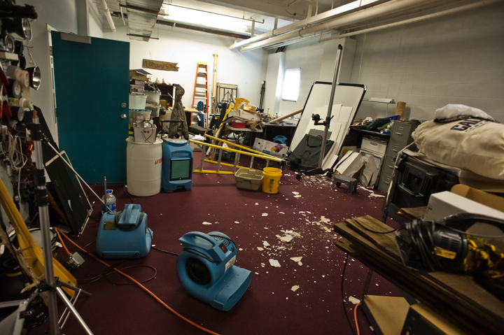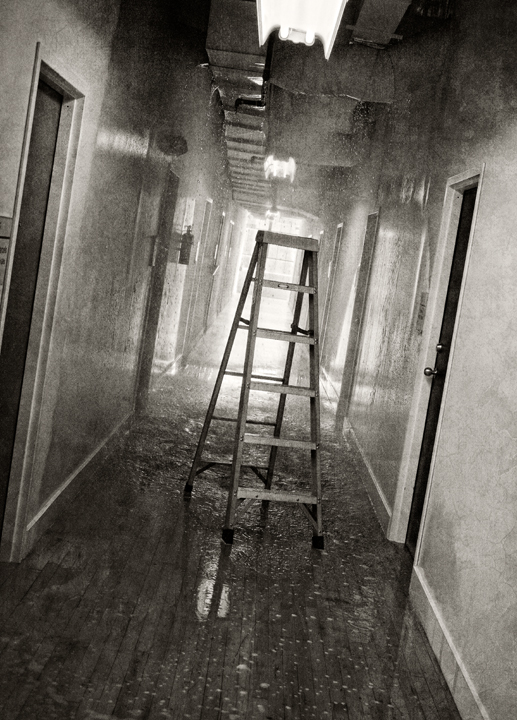 Some days are better than others and of course, some are more trying. Today was one of those trying ones, for sure. Late this morning while I was beginning to edit a job, the fire alarm in our building went off, which is never a good sign. After checking things out, I found out a cable worker had knocked a sprinkler head off in the hallway above my studio, directly above. A deluge of water soon began to pour through my ceiling and I started the rush to move my computer and camera equipment before it was ruined. With the help of my wonderful building neighbors, I was able to move everything that could be horribly damaged (I hope) including my film archive. Still, a lot of water came in and a lot of damage was done. A flood. Bright sunny day, my studio is on the second floor, fifteen feet above the ground, and I have a flood.