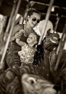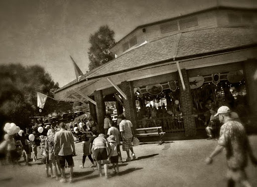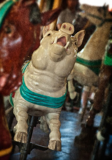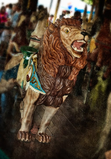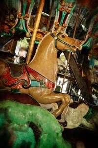 Photographs are from the Burlington Carousel Festival this past weekend. The festival this year was to celebrate the 100th birthday of Burlington’s City Park carousel built by the Dentzel Carousel Company of Philadelphia sometime around 1910. It was built originally for a park in Ohio and was purchased by Burlington and moved to North Carolina in 1948. Dentzel was one of the premier carousel makers at the beginning of the 20th century and the Burlington carousel is absolutely gorgeous. Consisting of 48 hand carved animals (including 26 horses) and beautiful painted panels, it is a prime example of Art Deco wood carving. It is in very good condition, because from 1981-1985 it underwent a very careful and complete restoration to bring it back to it’s original beauty. I rode the carousel when I was a very young child, and I remember the thrill of clinging to those prancing horses. By the looks on the faces of all the young children (and adults) on Sunday, the thrill is still there.