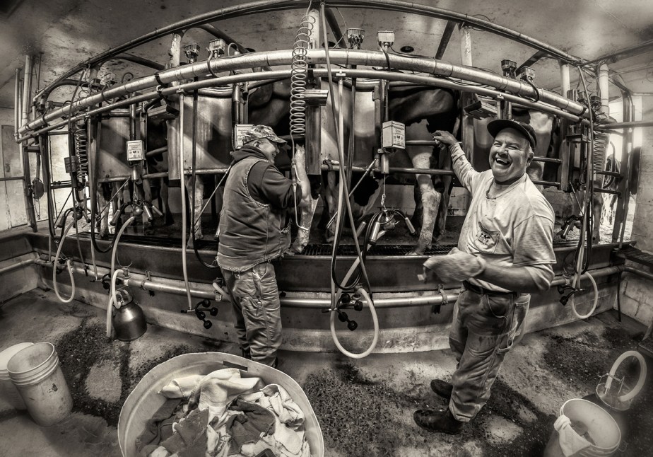 In the milking parlor at Williams Dairy. Grays Chapel, North Carolina.