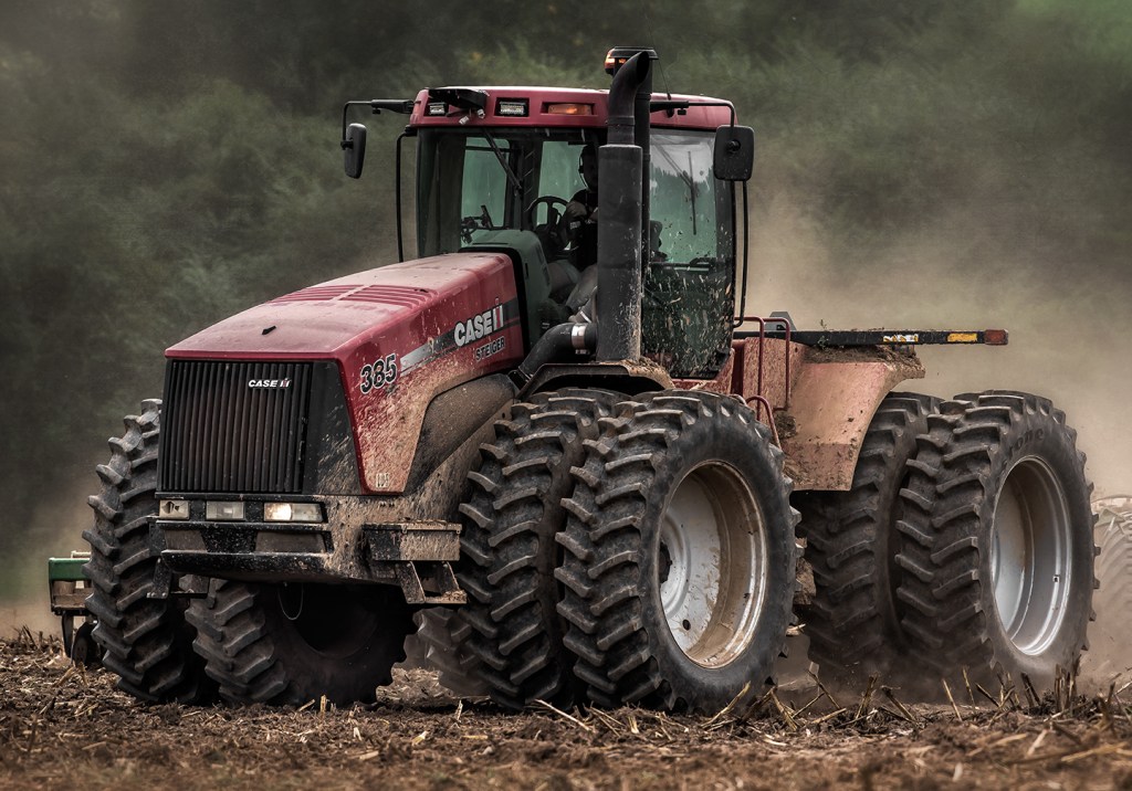 A corn planter plants around an old homeplace near Liberty, North Carolina.