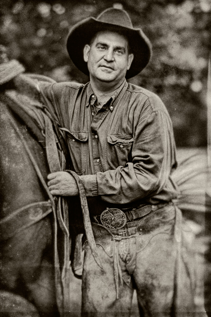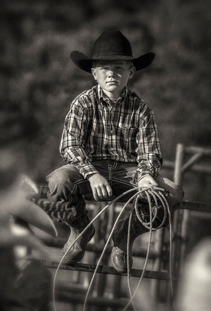 Cowgirl, rope and spurs. From the film days.