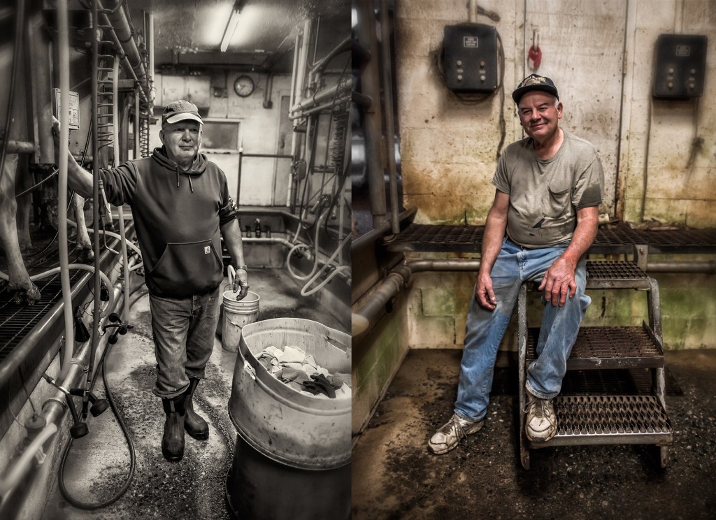 Brothers Greg and Rick Williams in the parlor at Williams Dairy. Grays Chapel, North Carolina.