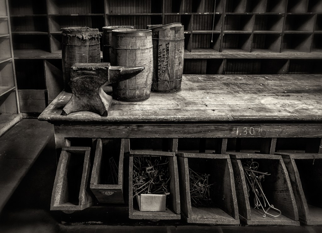 Details from the former Liberty Hardware (Liberty Machinery) which will soon become the Liberty Historical Museum. Liberty, North Carolina.