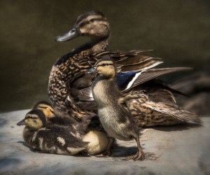 A Muscovy duck suns itself on a rock in Deep River yesterday afternoon in Franklinville, North Carolina.