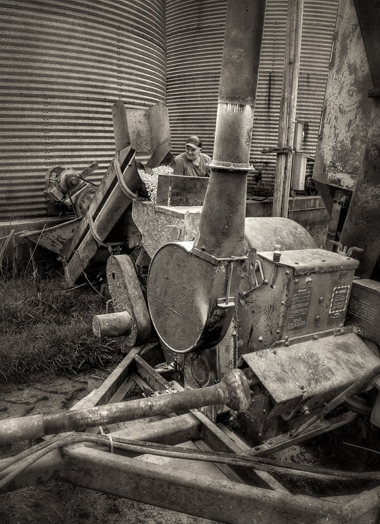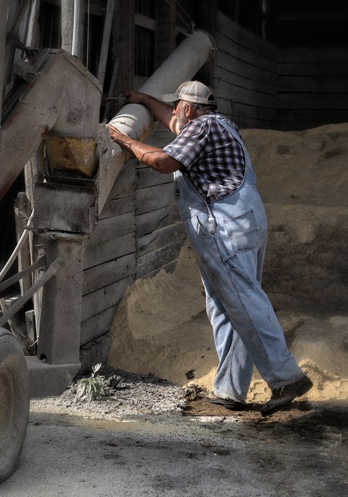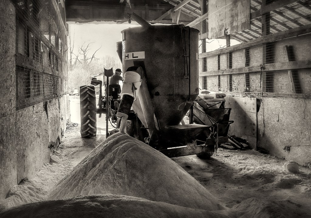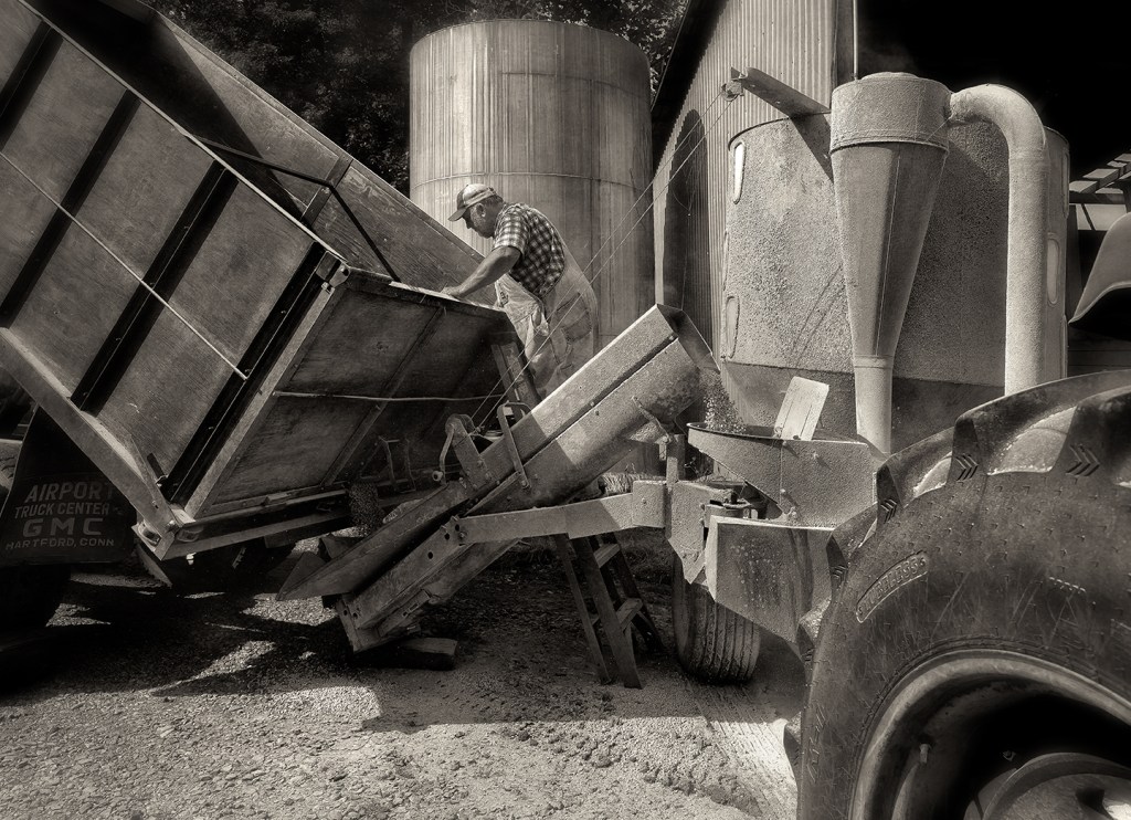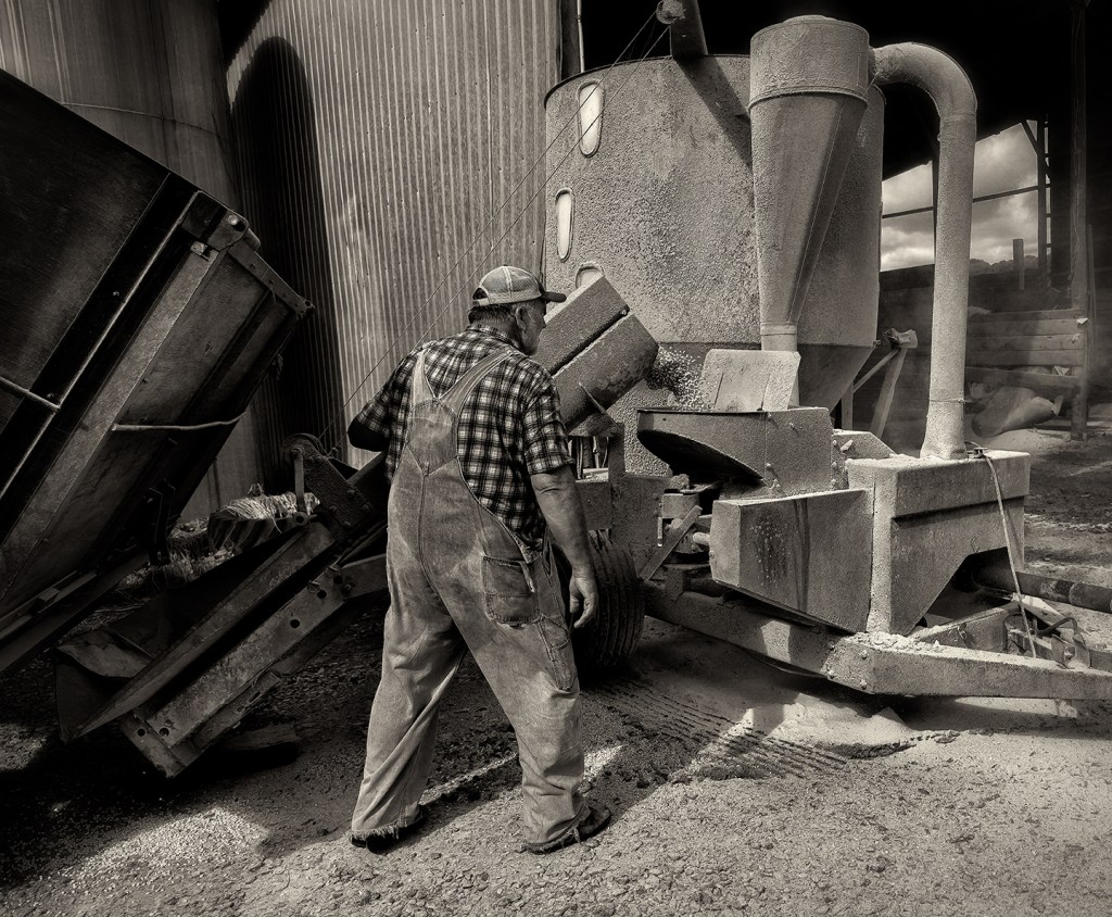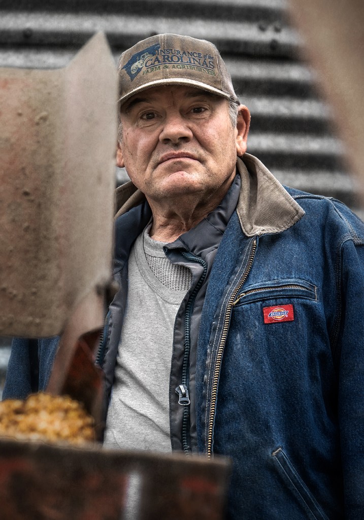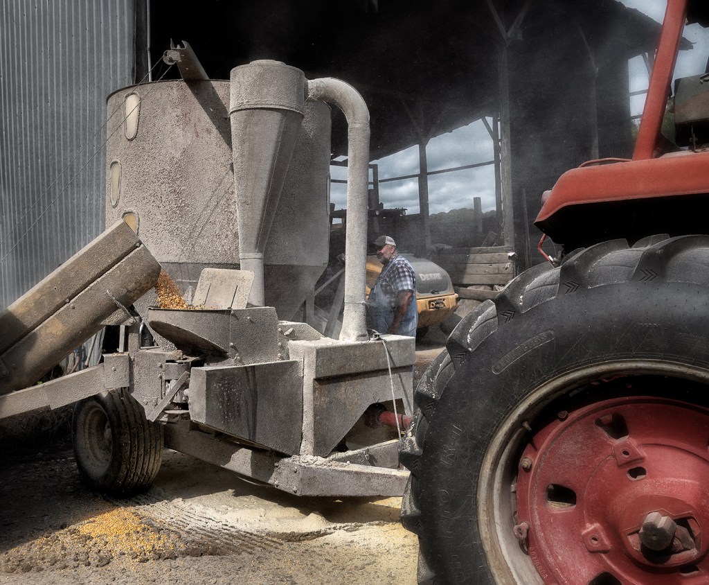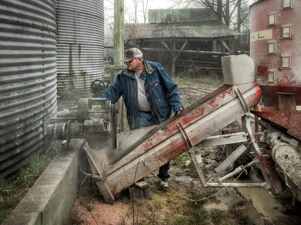 Rick Williams grinds dairy feed at Williams Dairy in Grays Chapel, North Carolina on a Saturday morning in February.