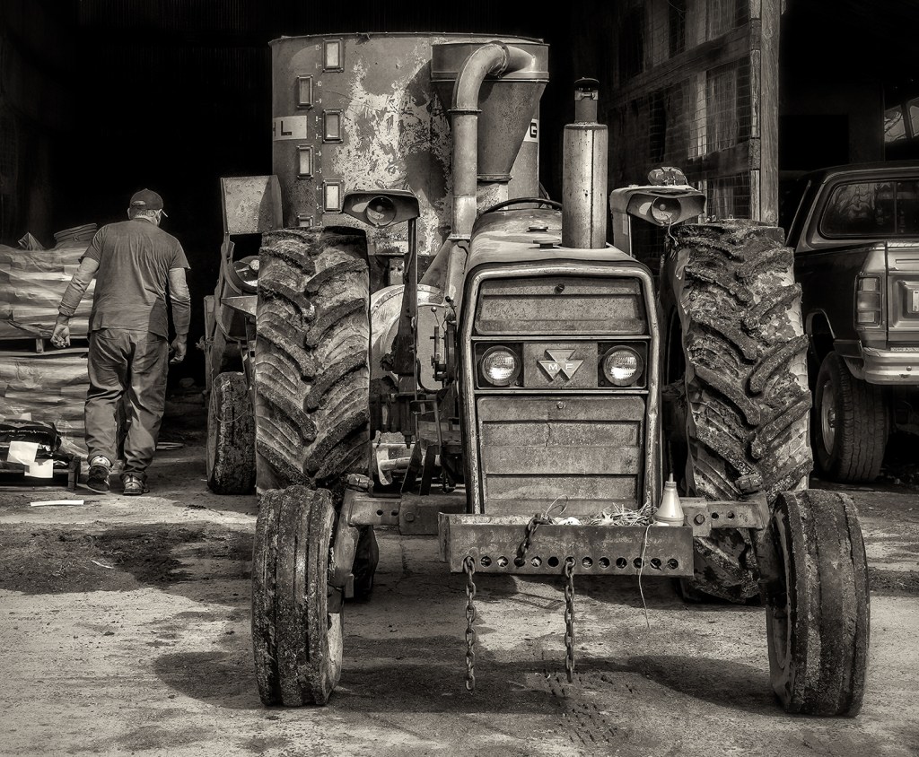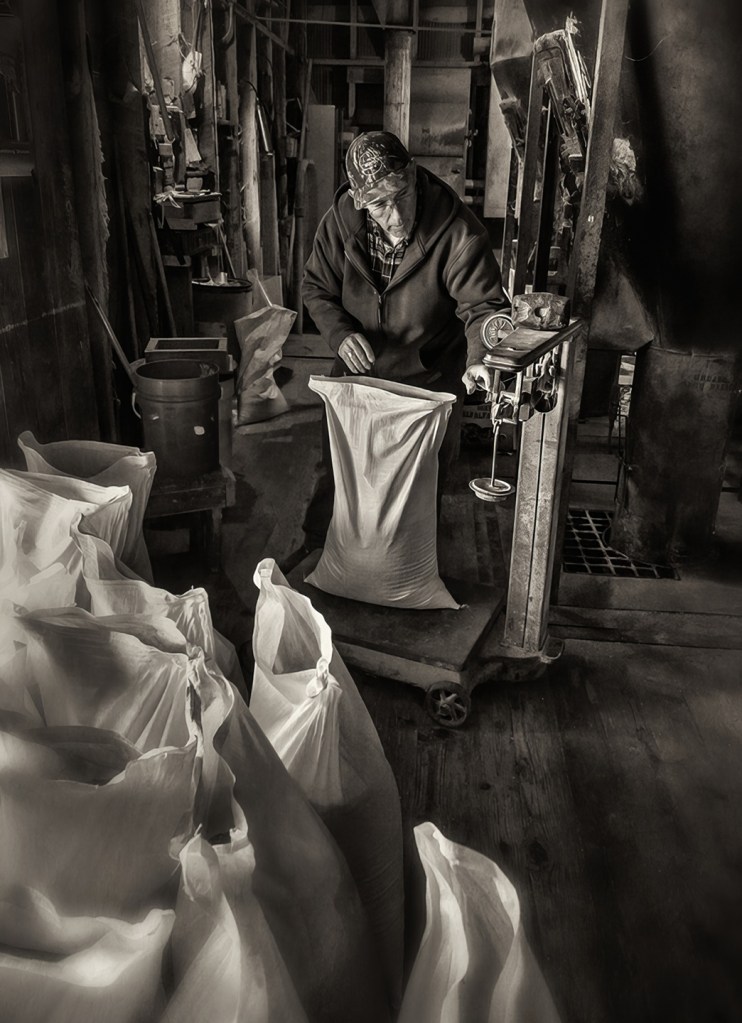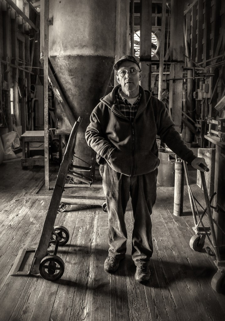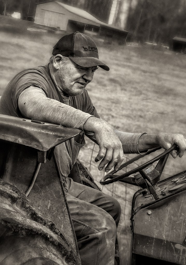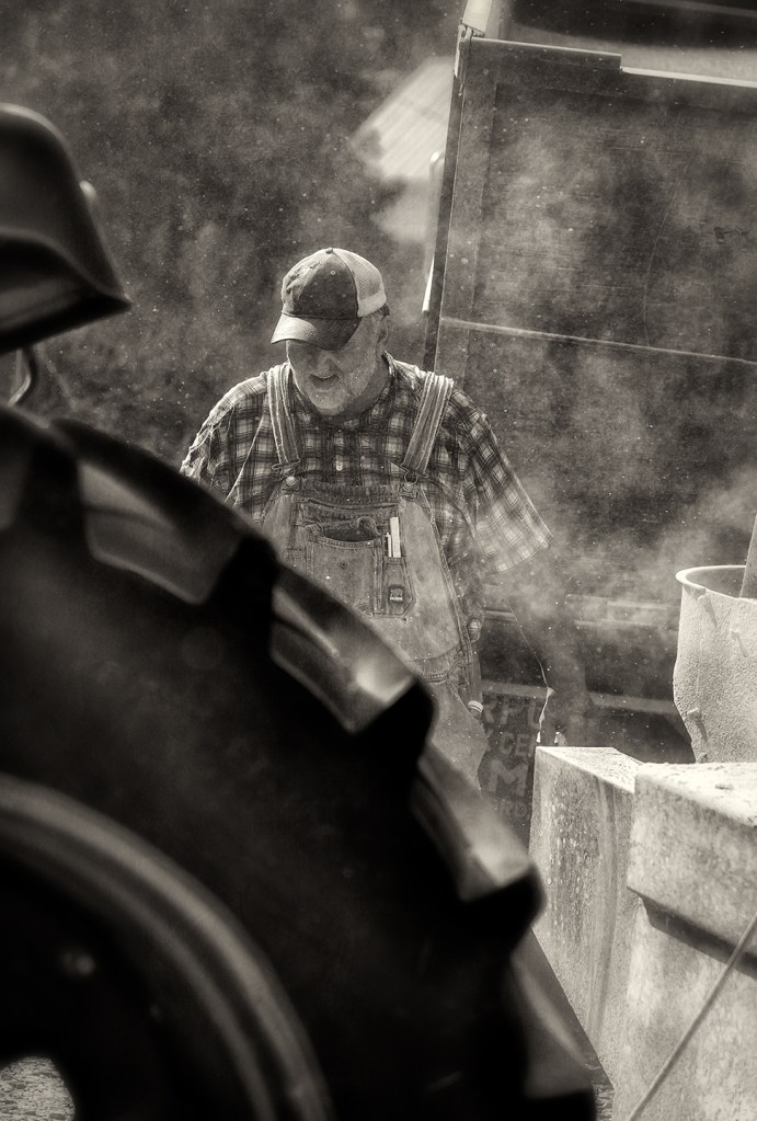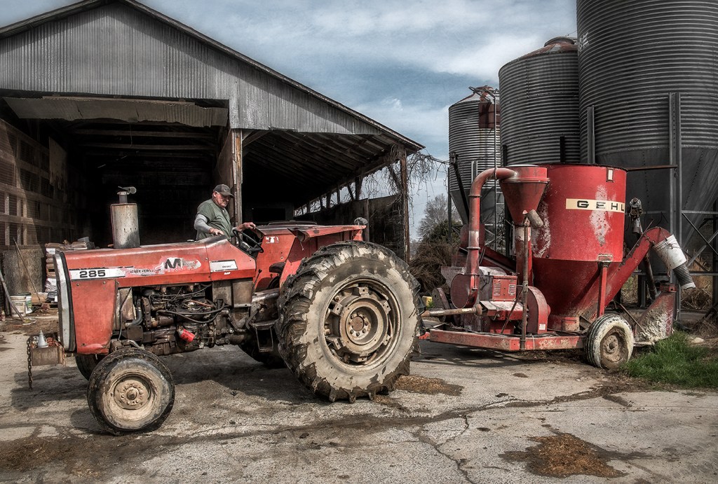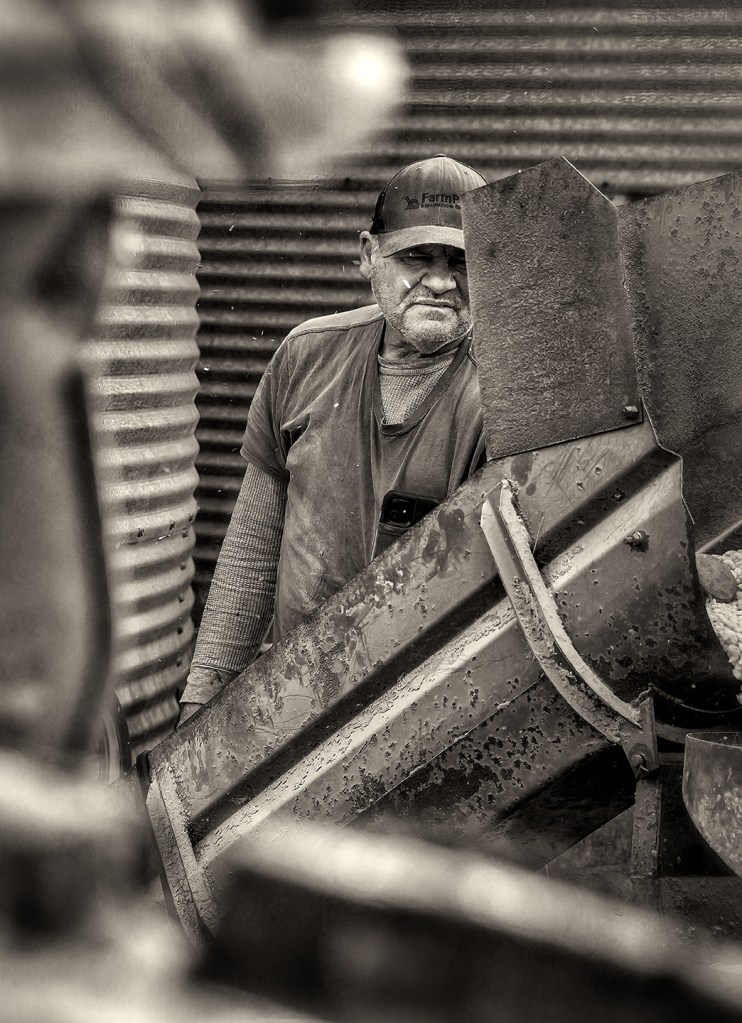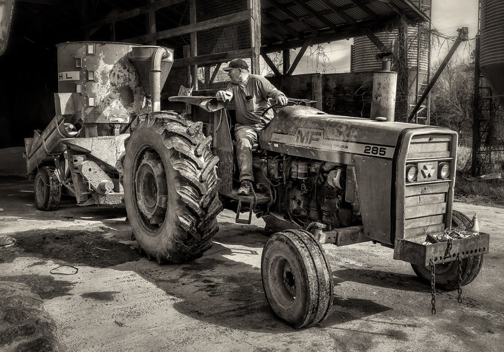 Rick Williams grinds dairy feed at Williams Dairy in Grays Chapel, North Carolina on a Saturday morning in February.