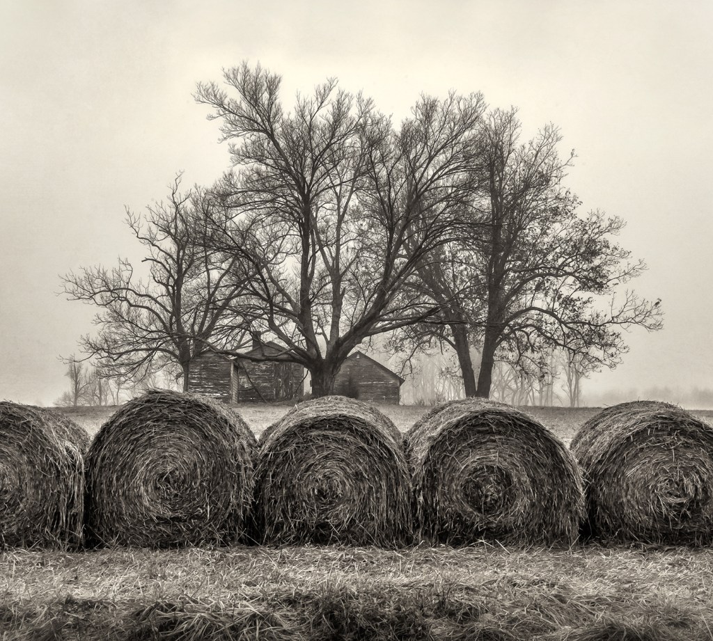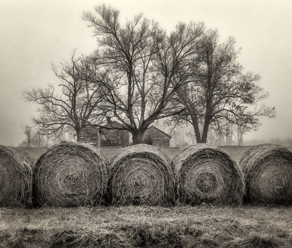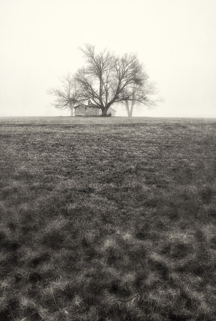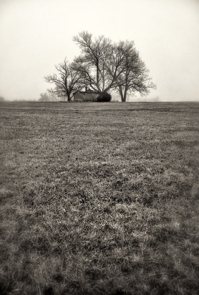 Farmstead in the fog. Grays Chapel, North Carolina.